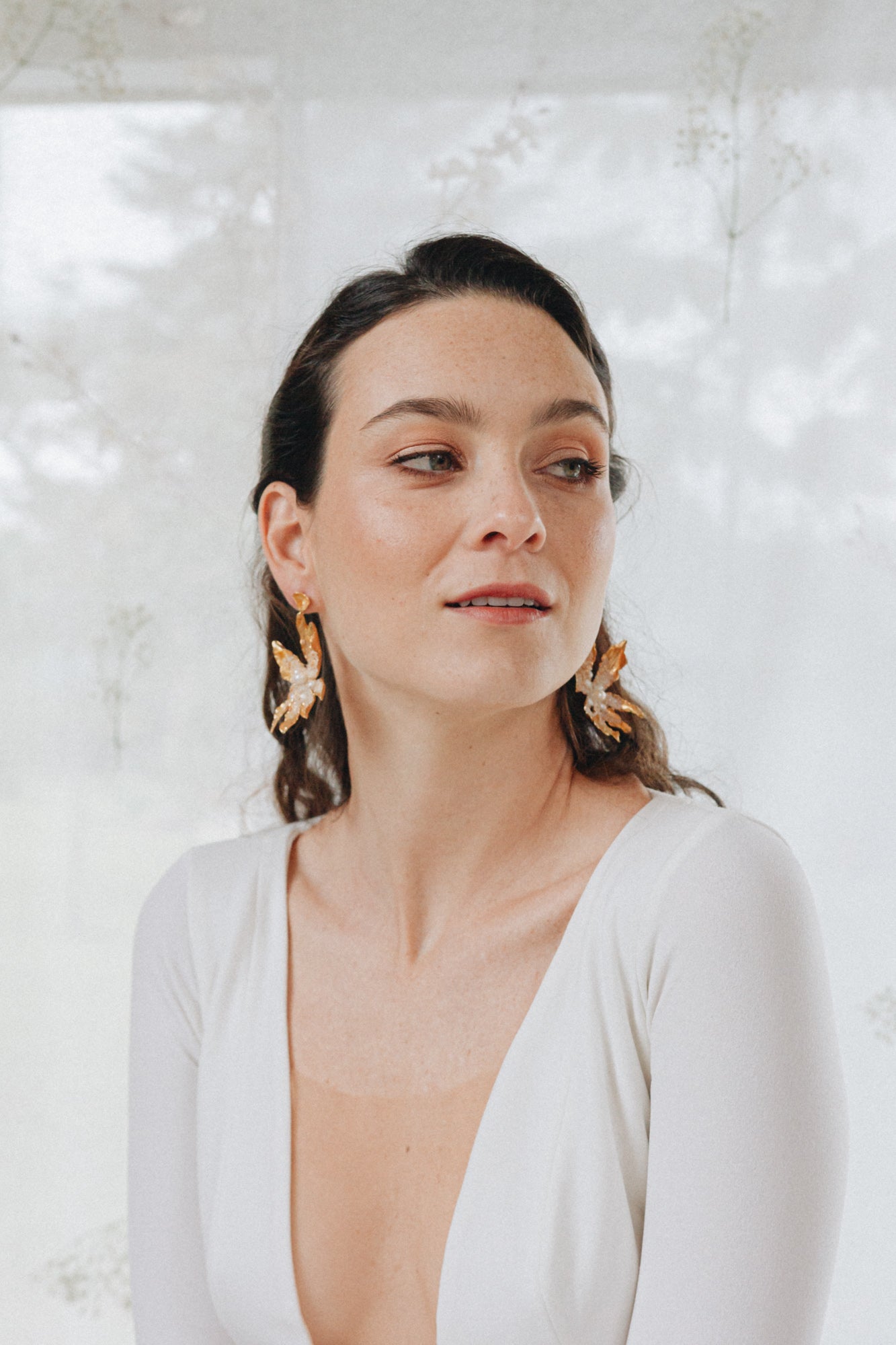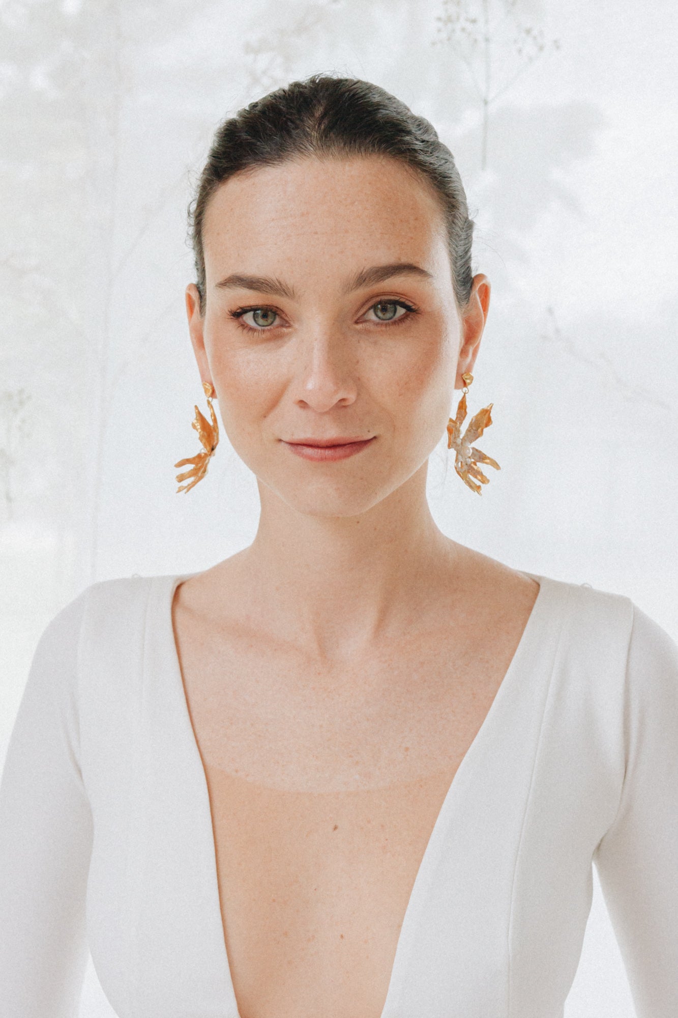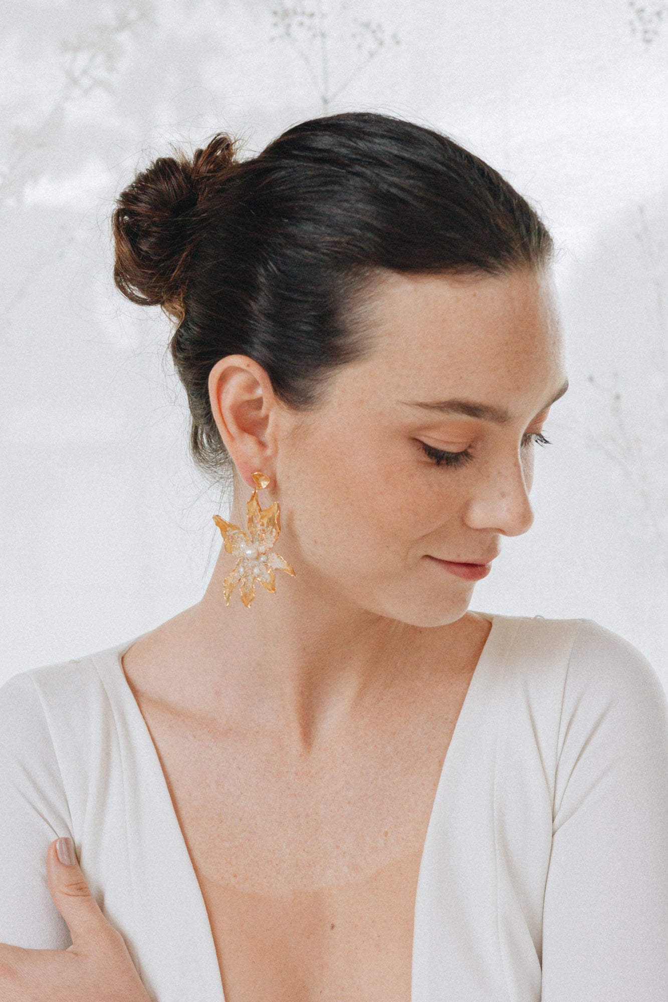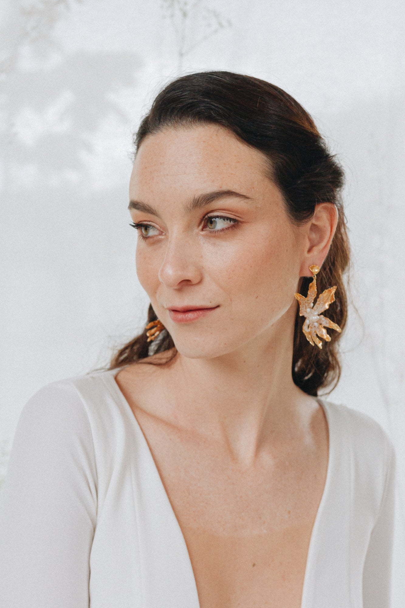 A. Gold plated bronze, hand painted with glass granulation and pearls.
