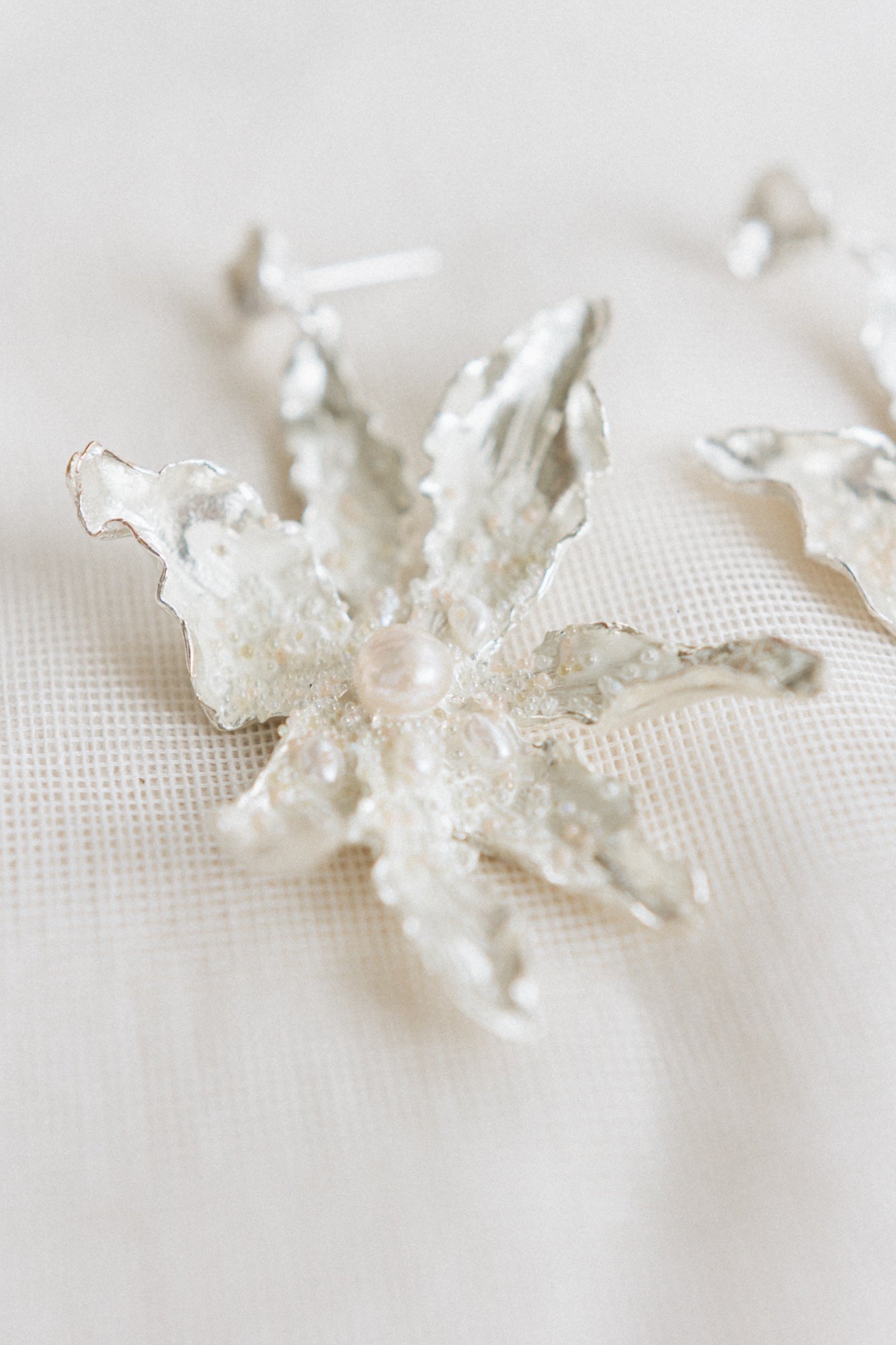 B. Bronze plated with 925 Sterling Silver, hand painted with glass granulation and pearls.